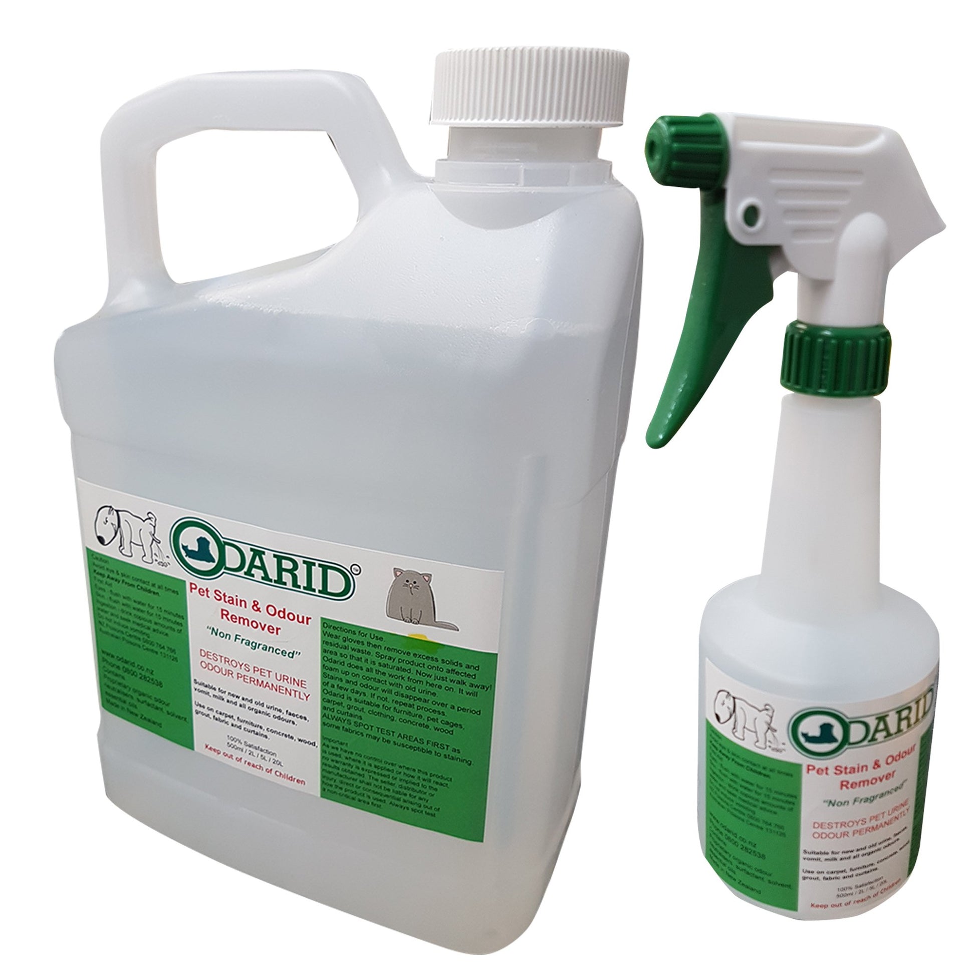 Odarid is used neat and designed to penetrate deep into carpet layers and totally destroy cat and dog pee instantly and permanently